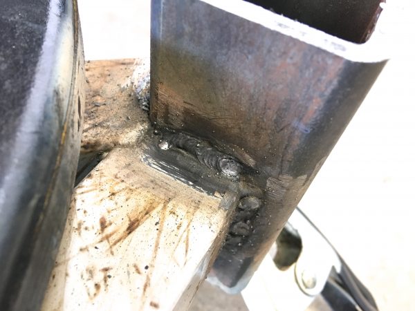 Ironically, the one with the best access is the worst. This one is facing up, and there’s plenty of space to work. There no excuse for this, except that I’m a half-assed weldor. But hey, it’ll hold.