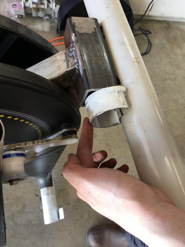 I also took time to remove anything nearby that might be damaged by the welding. There were electrical somethings zip-tied to the tubing inside the machine, which I could reach with a large forceps. One of the many advantages of growing up with a family full of veterinarians is that I learned the shop value of surgical tools. If you don’t own a full range of forceps, drop what you’re doing and buy some right now.